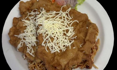 rántott sertésszeletek milánói spagettivel körítve